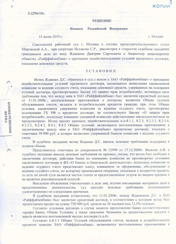 Райффайзенбанк проиграл суд т.к. незаконно взимал комиссию за ведение ссудного счета