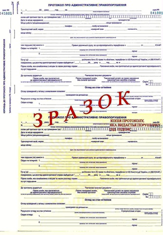 В верхней части сотрудник ГАИ заполнял графу «Сведения о личности нарушителя». В конце протокола ставилась подпись о том, что водитель ознакомлен со статьями 63 Конституции Украины, 268 КУоАП и 130 КУоАП. Там также было написано «Подпись нарушителя». Далее следовало поле, в котором водитель тоже должен расписаться, под ним также значилось «Подпись нарушителя».